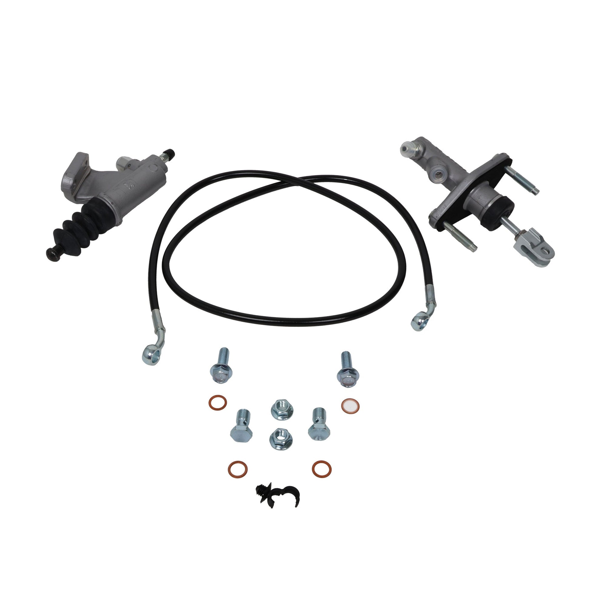 Master Cylinder with clevis installed and pre-calibrated to OEM TSX specs & plated steel clevis Clutchline: The clutch line in the kit replaces hard and soft lines between the master cylinder and the slave cylinder. Mounting hardware for the factory transmission point and two standoff clips for mounting the line to the driver-side frame rail are included. A neoprene firewall seal is included to prevent water and debris from entering the cabin. A 1oz packet of PTFE grease will be used on the pin that holds the clevis to the clutch pedal. The grease will reduce the NVH produced at the pedal assembly.