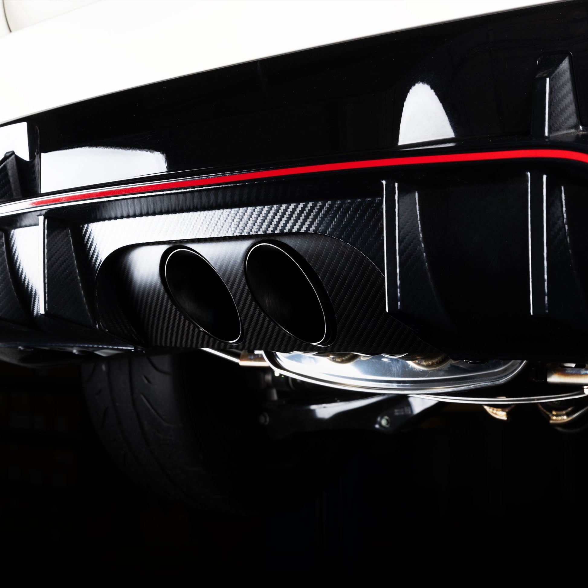 We've introduced a dry-carbon fiber rear trim panel to elevate aesthetics and personalization, an elegant addition offering a unique style. Moreover, our range of exhaust tips allows enthusiasts to curate their desired look.