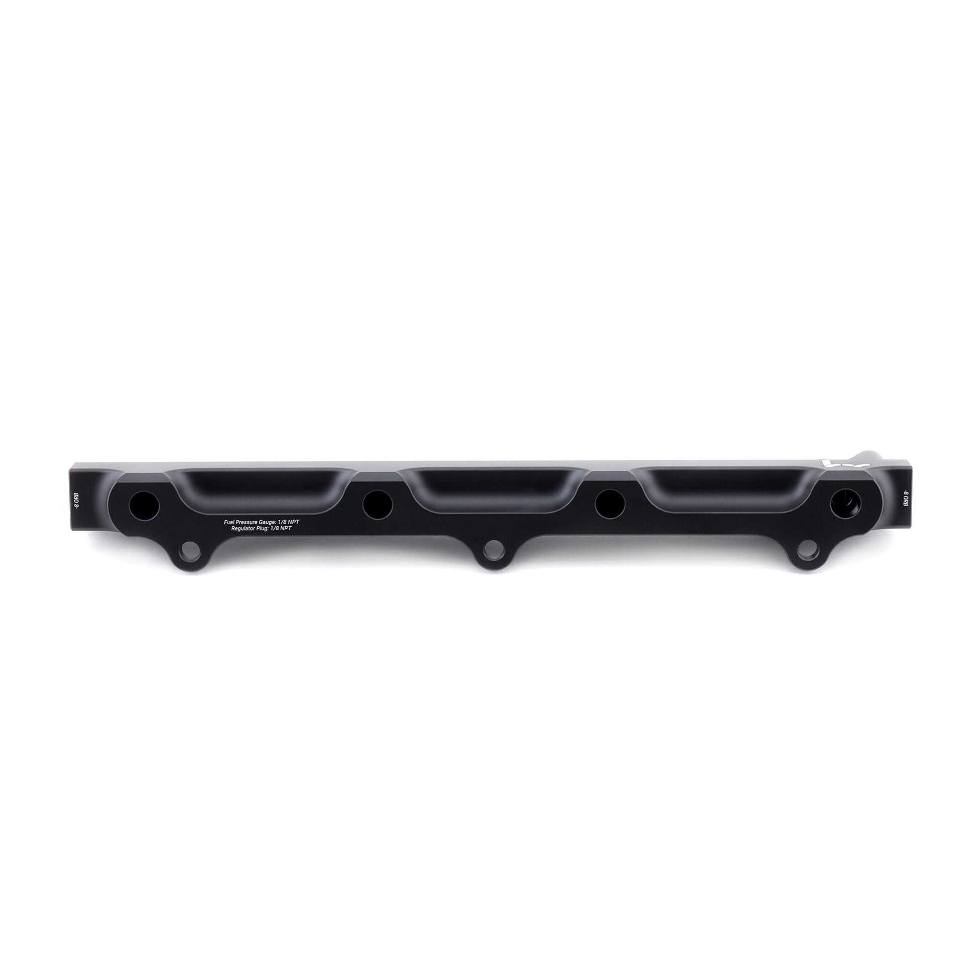 Each rail includes a 1/8" NPT hole that allows you to mount a fuel pressure gauge directly to your fuel rail. This puts the fuel pressure gauge in an easily visible spot, so you don't have to poke around in the engine bay just to see if you have fuel pressure. All the ports can accept a -8 ORB fitting in the inlet(s) and outlet, allowing you to run either the OEM B-Series FPR or use the supplied 1/8th NPT plug and the side -8ORB port.