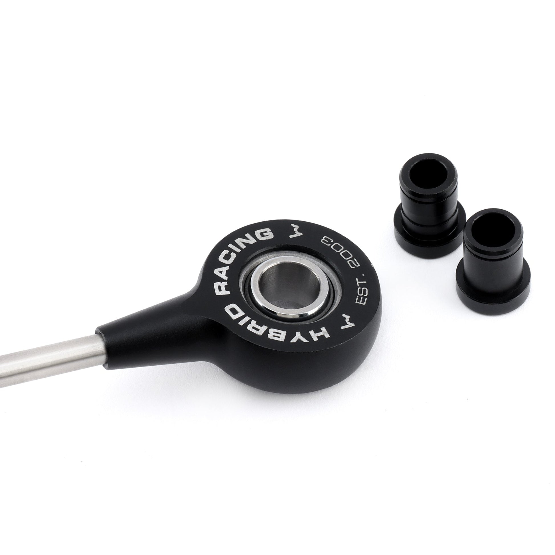 Hybrid Racing shifter cables are a performance upgrade replacement for stock OEM cables. The solid rod ends, permanently lubricated core, spherical bearings, & aluminum end links give the Hybrid Racing cables a firmer, tighter feel over OEM cables resulting in fewer missed shifts and a more connected feel to the chassis. Heat resistant up to 225*F with a max bend radius of 5" (for optimum life)