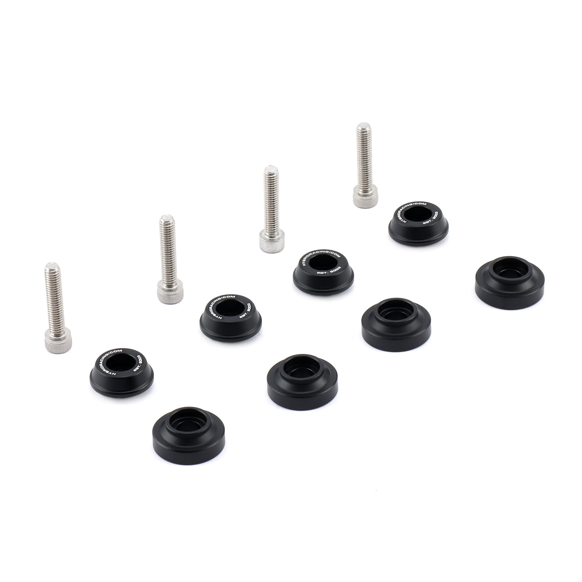 Hybrid Racing replacement shifter base bushings are designed to improve shifting precision and eliminate the soft OEM rubber bushings that cause sloppy shifting. The shifter base bushings are a cost-effective way to eliminate unwanted slop in the shifter and improve your overall driving experience!This product is designed to replace the factory rubber base bushings found in the factory shifter. These base bushings do not work with the corresponding Hybrid Racing shifter. For dress-up hardware, please see: Hybrid Racing Accessory Hardware.