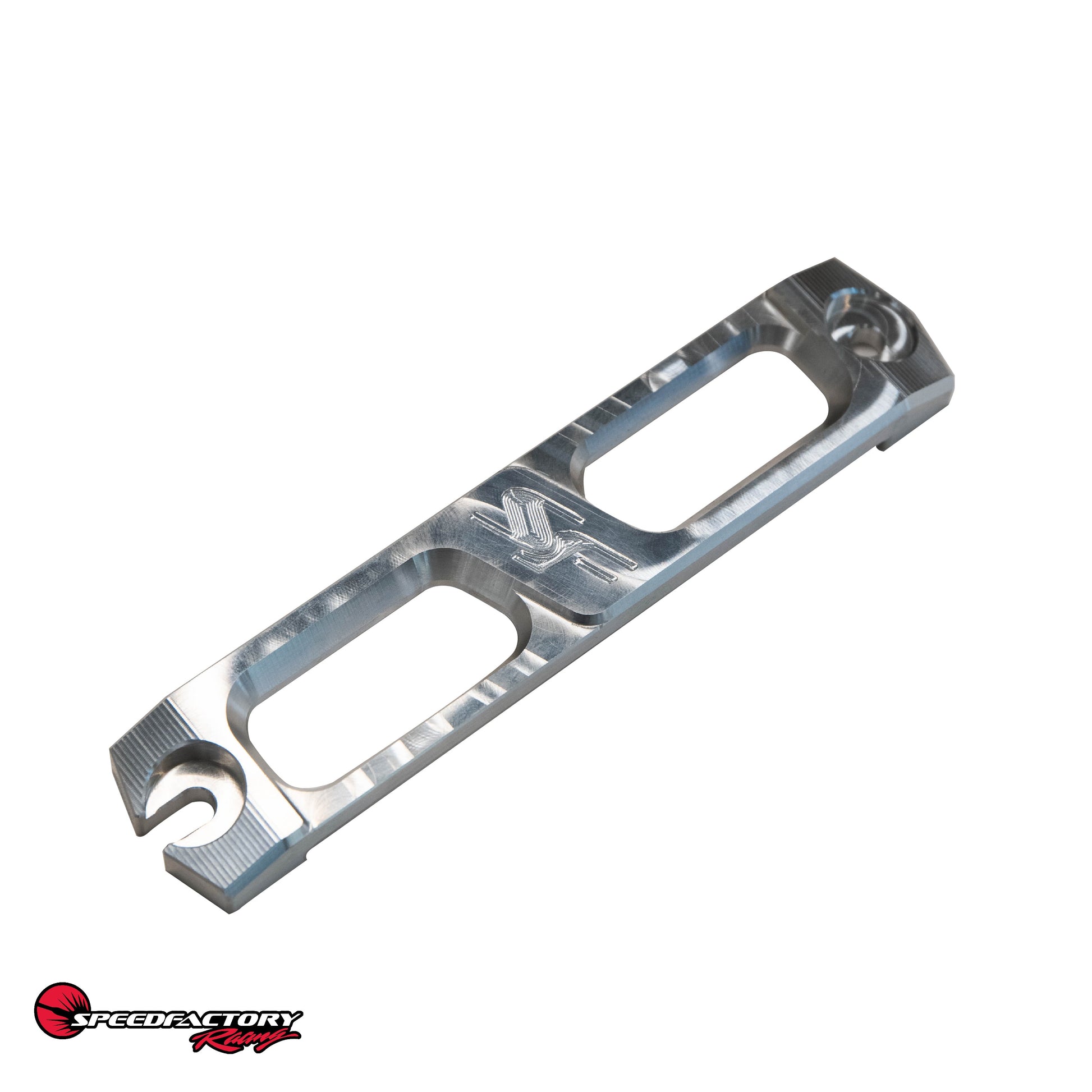 Set off your engine bay with the SpeedFactory Billet Battery Tie Down! Each billet battery tie down is CNC'd from high quality 6061 aluminum. They are compatible with OEM mounts and will work on full size or smaller aftermarket batteries.