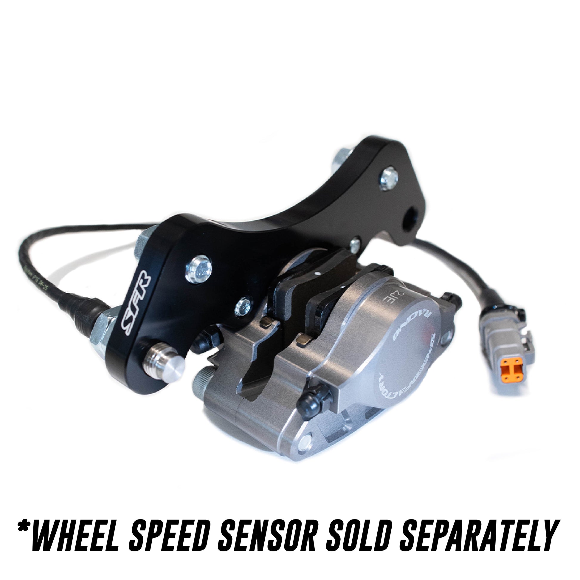 - Caliper Adaptor Brackets with incorporated speed sensor mounting provisions, precision CNC machined from 6061-T6 billet aluminum with black anodized finish to add durability and eliminate corrosion with laser-etched SpeedFactory “SFR” logo