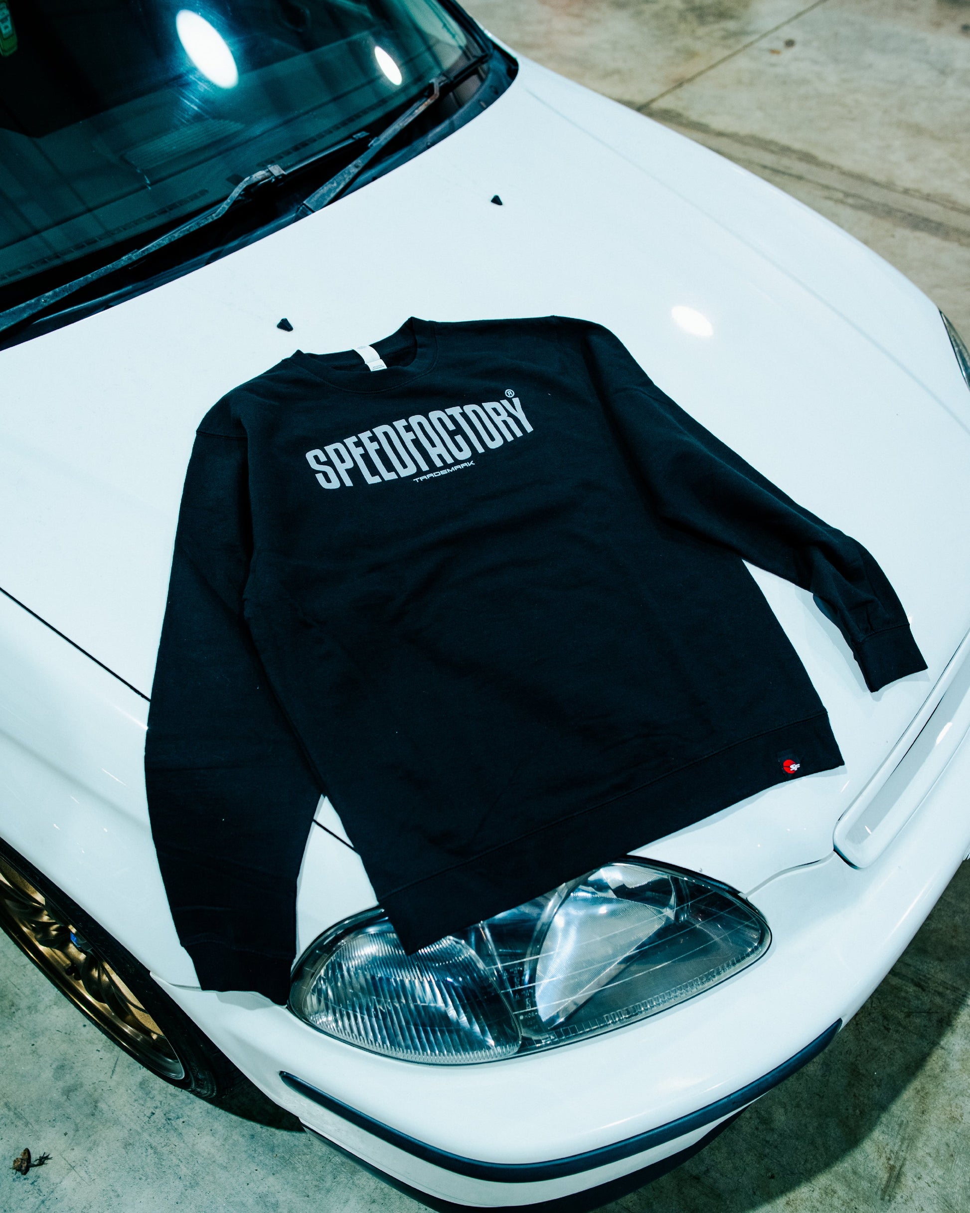 SpeedFactory Racing - "SpeedFactory Brand" Crew Neck Sweatshirt is a new staple in the SF lineup. A sharp looking relaxed crewneck that you can wear for almost any occasion.