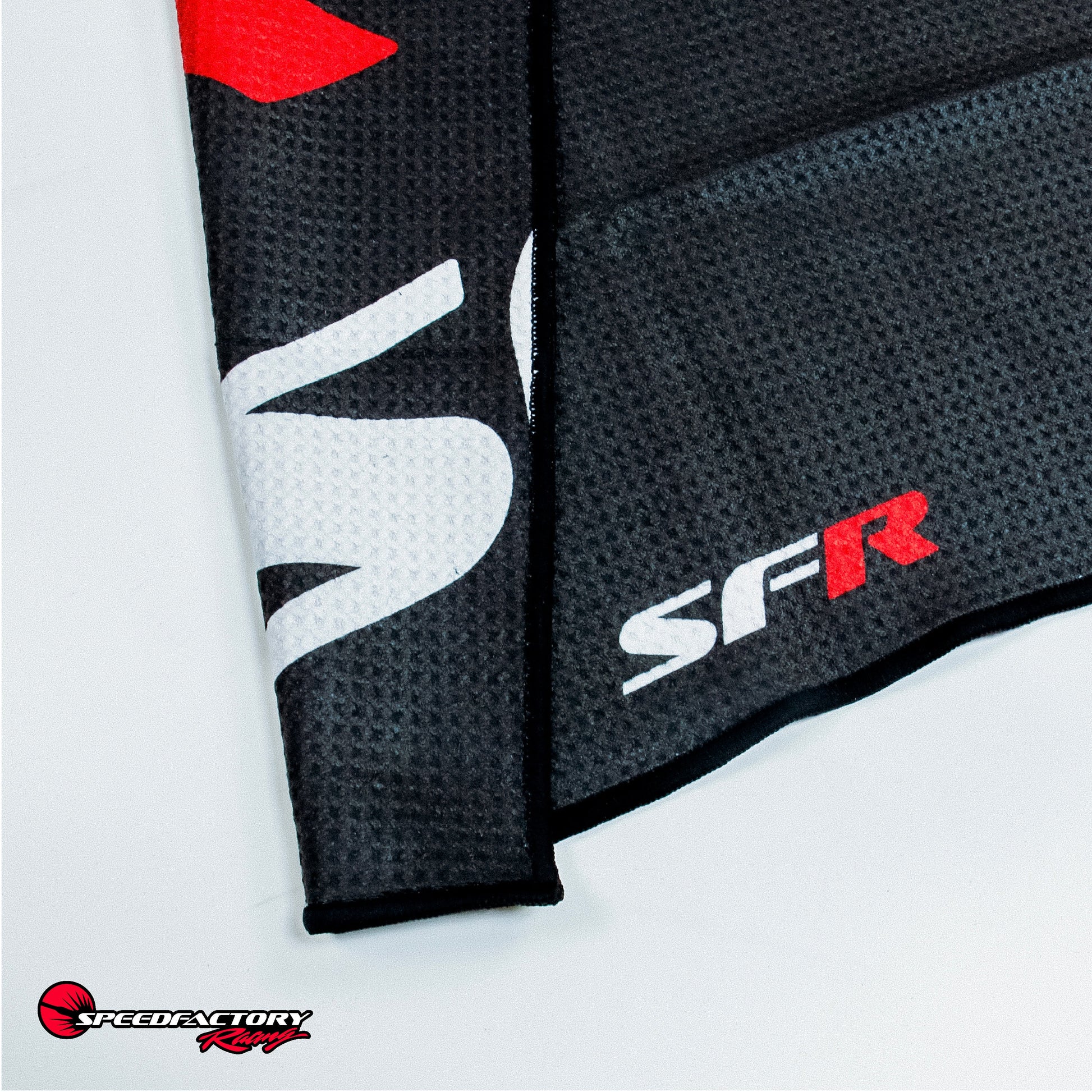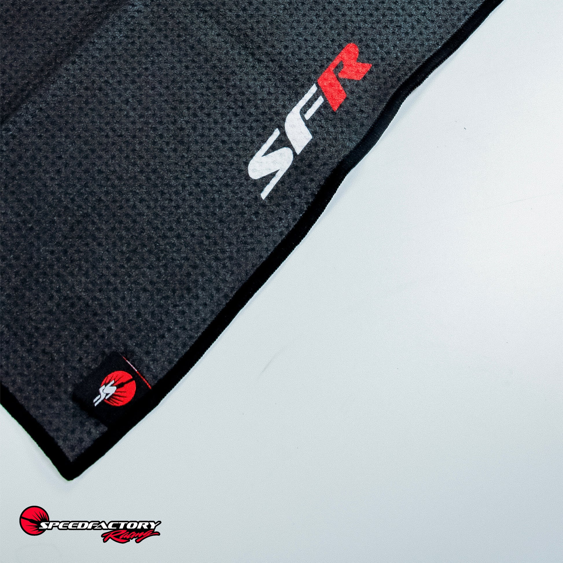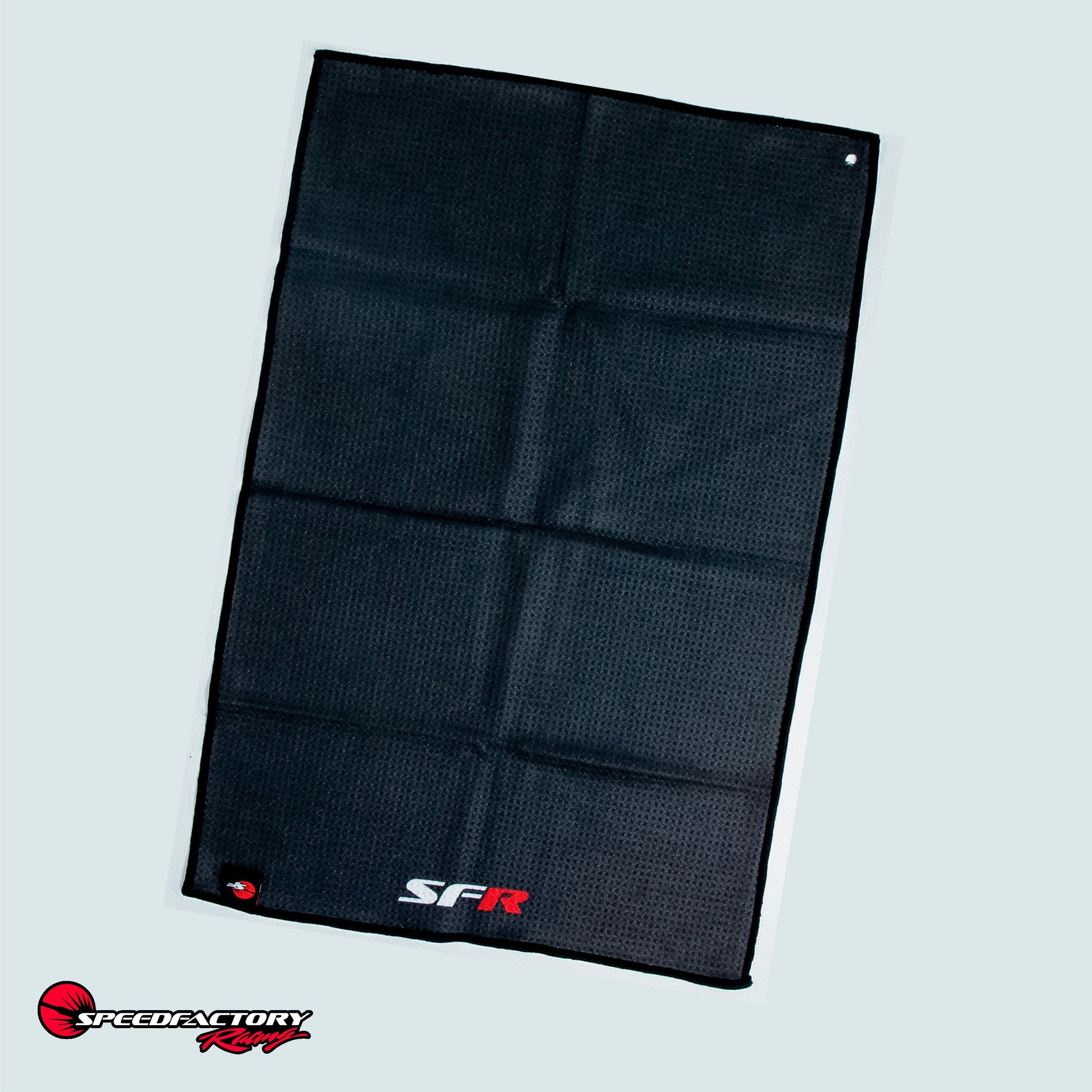 Multi Purpose SFR MicroFiber Rally Towel! Whether you are at the track rooting for our team, detailing your car, cleaning up tools and parts in the garage or cleaning clubs on the golf course, the SpeedFactory Racing SFR towel will get the job done.