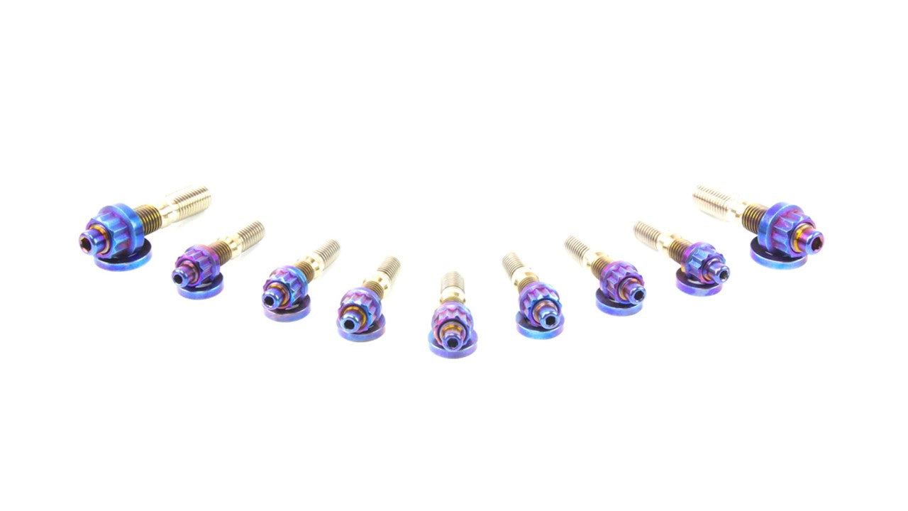 These SpeedFactory titanium stud kits are made of Ti6Al-4V and incorporate a hex key tip that allows them to be easily installed using an Allen wrench. Titanium 12-point nuts and washers are included.
