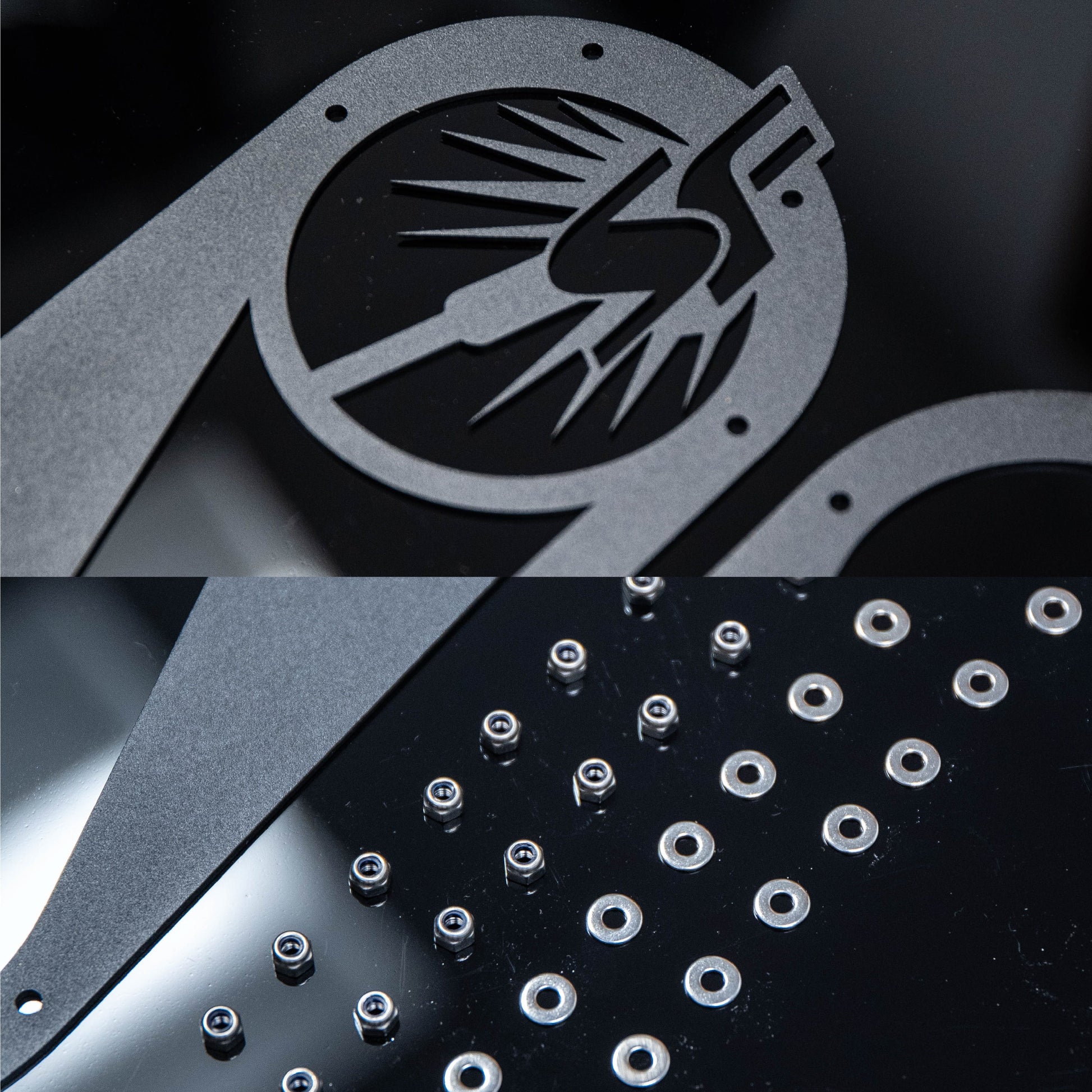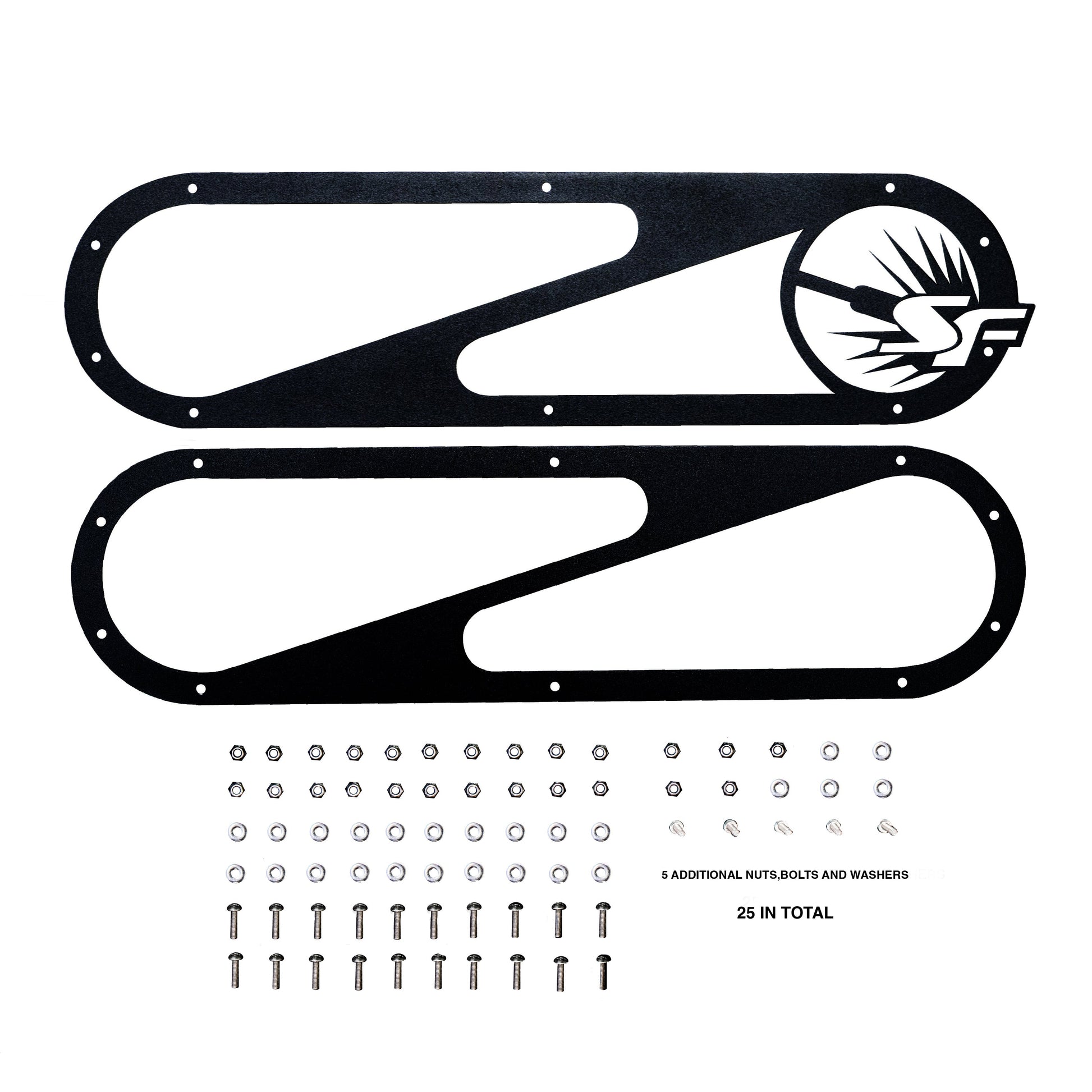 6061-T6 aluminum construction with a black powder coated finish and bolts, washers, & nyloc nuts needed for installation are included.